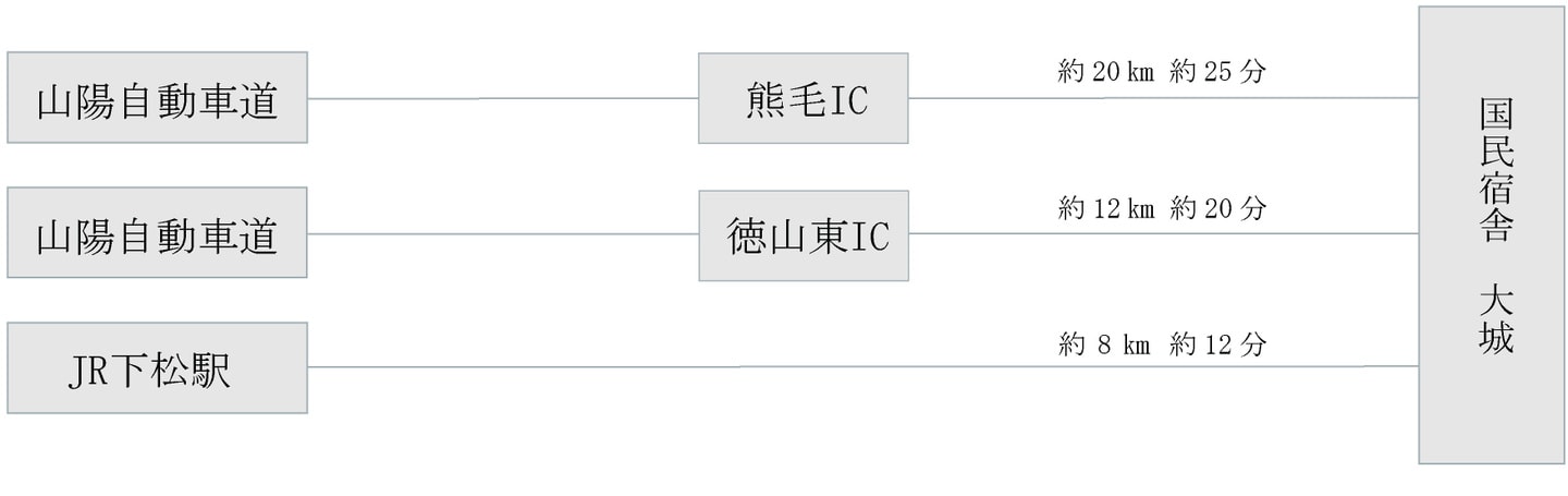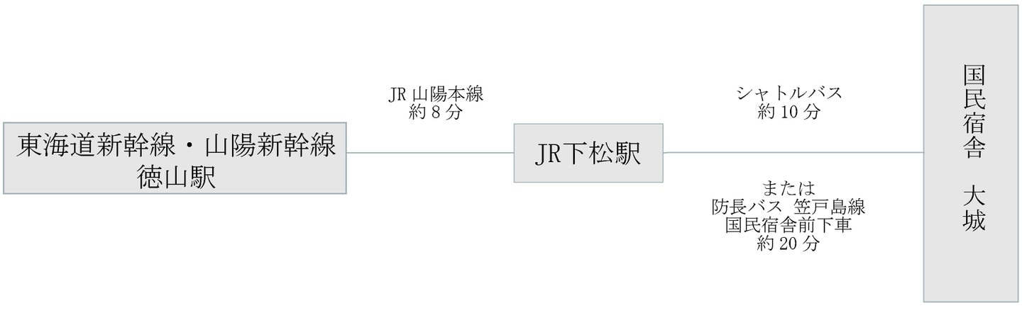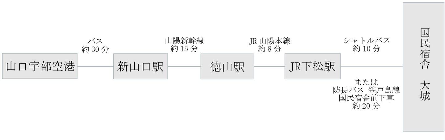 3.北海道、東北、北陸の場合、福岡空港へアクセスが良い場合は、福岡空港から新幹線でJR徳山駅に行くのが便利です。